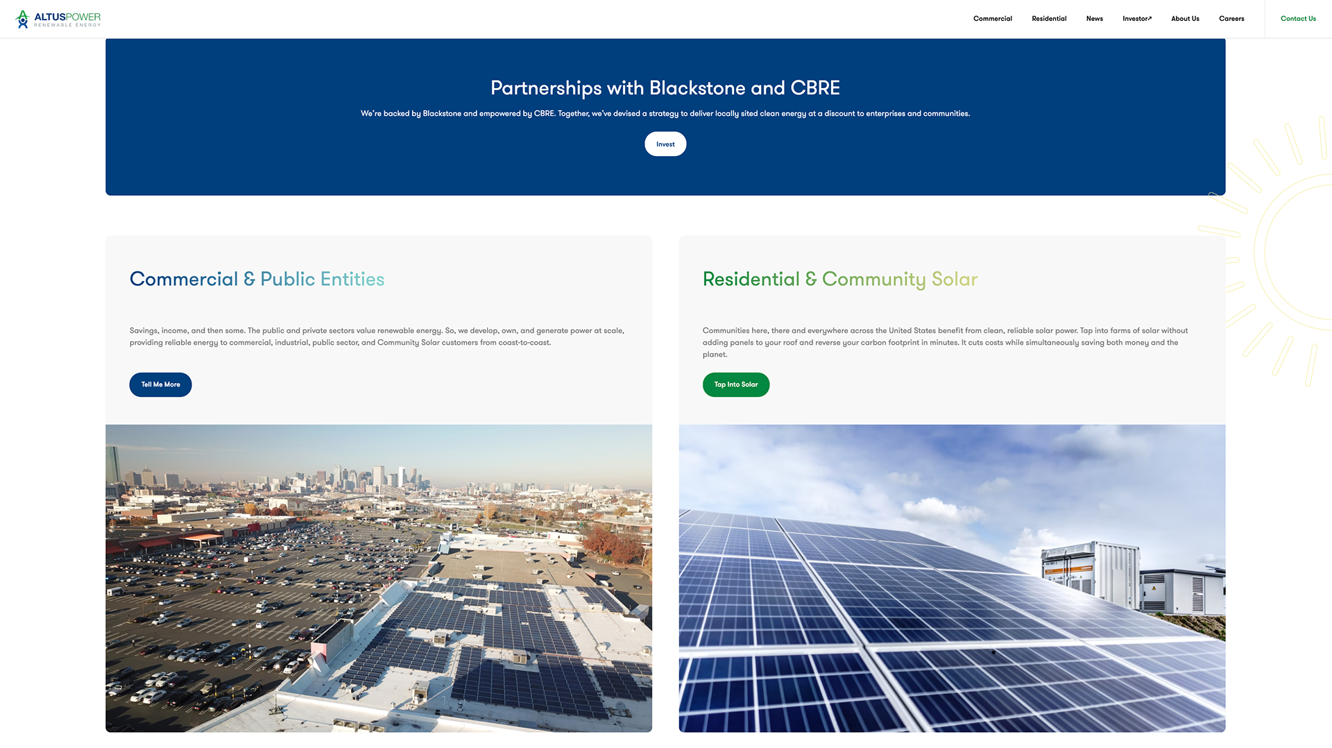 Altus Power is an alternative energy company in Stanford, Connecticut. Before going to Wall Street, they had to meet Main Street. Here's the client-facing site.