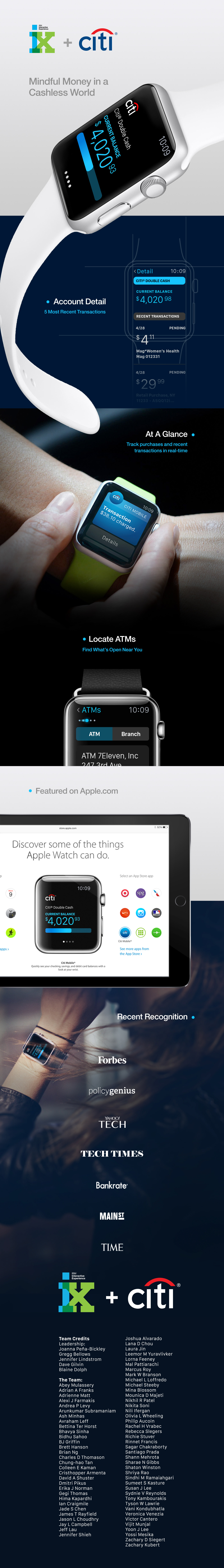 Citi was the first bank to build an application for Apple Watch. I'm proud to have led the content and copy efforts for such a ground-breaking device.